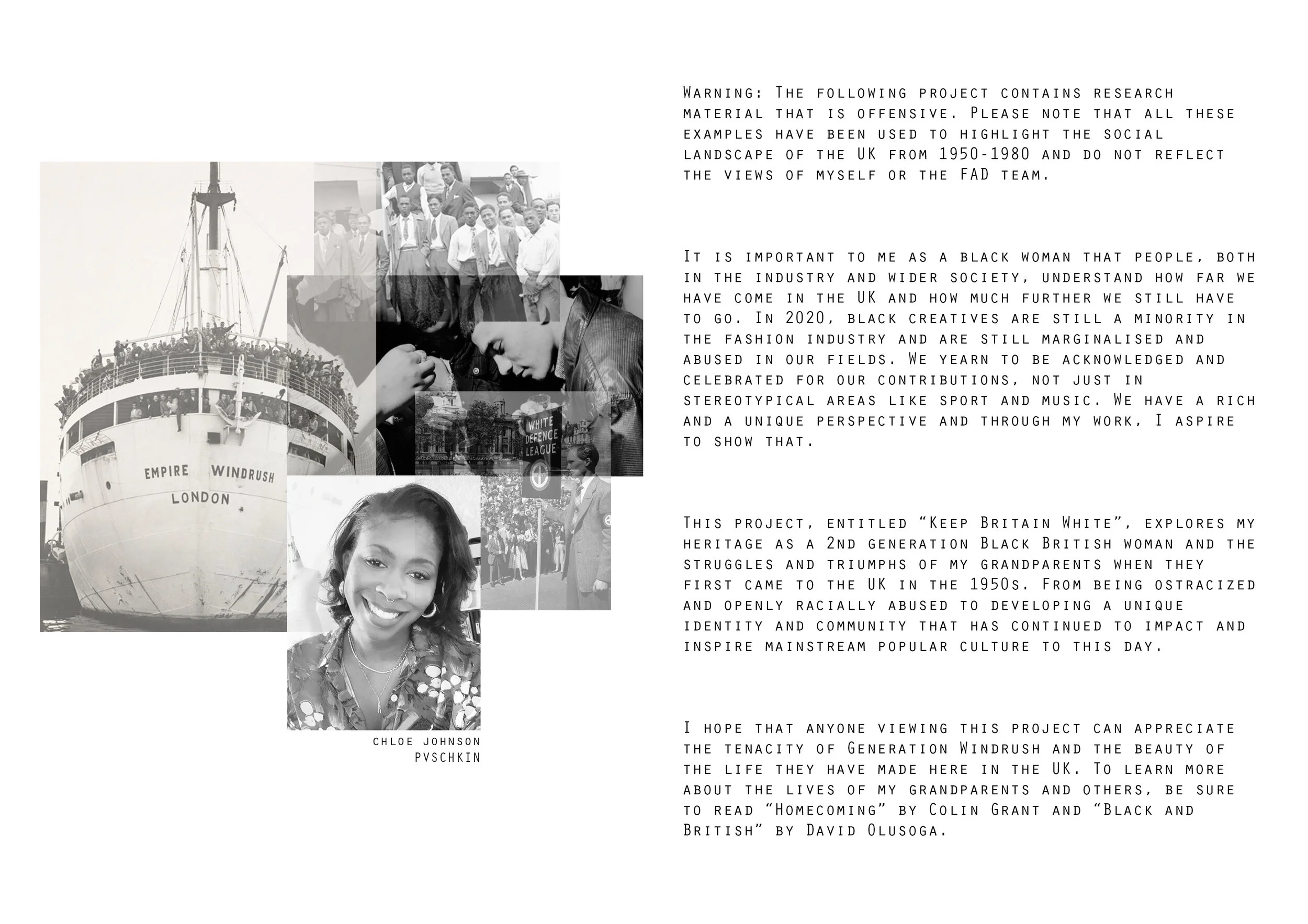 A PROJECT INSPIRED BY GENERATION WINDRUSH AND MY IDENTITY AS A 2ND GENERATION BLACK BRIT.